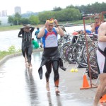 - Алексей Соболев, уже на подъезде к транзиту был готов спрыгнуть и побежать к своему месту для переодевания на бег. Кепка, как мы видим, предусморительно уже находится под шлемом 🙂